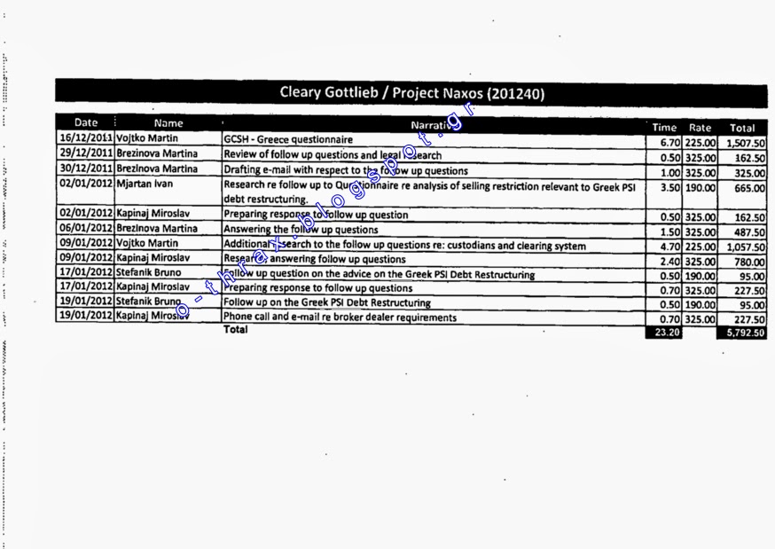 Τα έγγραφα που ακολουθούν είναι μια σειρά από τιμολόγια δικηγορικών γραφείων που ασχολήθηκαν με το PSI και είναι οι αμοιβές τους για το 2012