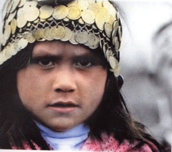 Μικρή Αραουκανή φοράει τα χαρακτηριστικά ελληνικά κρεμαστά φλουρια στο κεφάλι